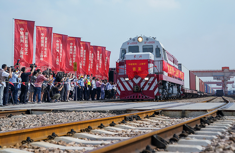 “上海号”中欧班列从上海首发,驶向德国汉堡(9月28日摄)。新华社记者 丁汀 摄