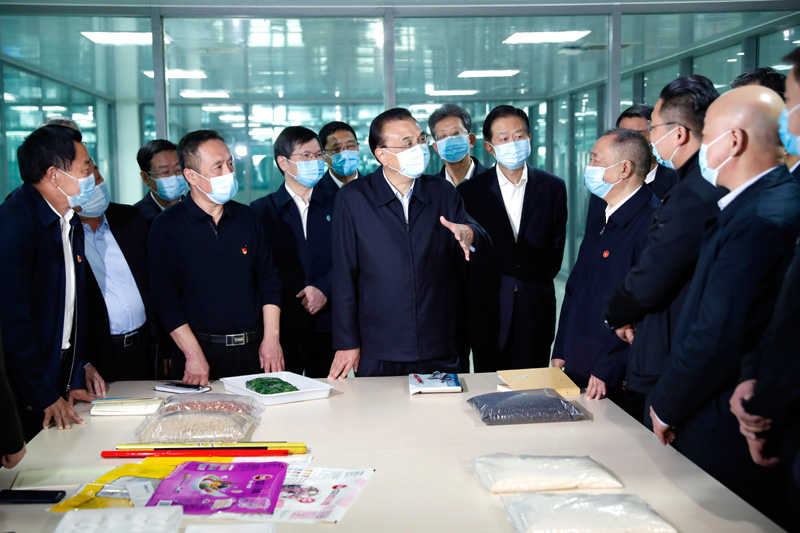 在三全食品公司,李克强了解生产经营情况,叮嘱食品生产要坚持安全第一、质量第一,力争美味第一。李克强询问几位给公司配套的中小微企业负责人,减税降费等政策是否落到企业,还有什么需求。大家谈到国家政策帮企业渡过了难关。李克强说,面对疫情和世界经济衰退冲击,我们多措并举做好“六稳”工作、落实“六保”任务,坚持不搞大水漫灌,精准施策,特别是实施纾困政策和财政资金直达机制,注重激发市场主体活力,突出保就业保民生保市场主体这前三保,前三季度经济实现正增长,稳住了经济基本盘。要把握好政策的有效性和可持续性,努力实现全年正增长,并为今后发展打下坚实基础。